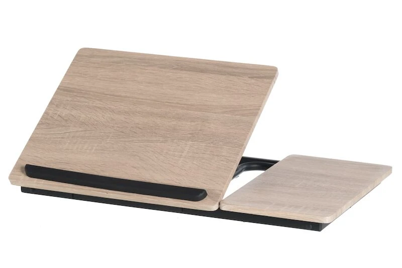 Ergonominen taitettavilla jaloilla oleva 4Living Bell tietokonepöytä sopii työpöydän päälle muuttamaan työskentelykorkeutta tai vaihdellakseen työasentoa. Pöytälevy on jaettu kahteen osaan, joista toista voi kallistaa tabletin tai tietokoneen mukavampaa käyttöä varten ja toinen osa on kiinteä ja tasainen vaikkapa tietokoneen hiirelle tai kahvikupille. Taitettavien jalkojen ansiosta pöytä menee pieneen tilaan ja on helppo kuljettaa mukana sekä säilyttää. Enimmäiskantavuus 3 kg. Jalkojen korkeus 23 cm