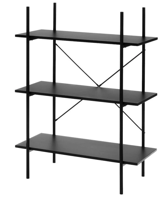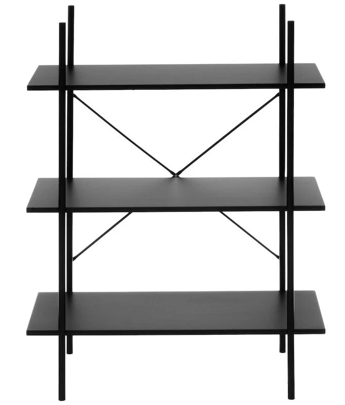 Tyylikäs musta 4Living hyllykkö antaa sisutukseen kontrastia ja tarjoaa paljon säilytystilaa. Aseta hyllykkö lattialle,ei seinäkiinnitystä. 3 tasoa. Tankojen välinen hyllynleveys on 58,5 cm ja korkeus hyllyjen välissä on 33 cm. Runko on valmistettu metallista ja tasot lastulevystä.