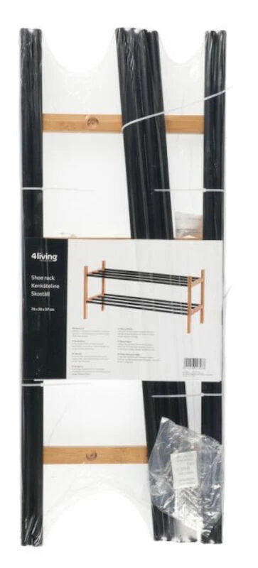 Tyylikkäässä 4Living kenkätelineessä yhdistyy kauniisti luonnollisen värinen bambu ja musta metalli. Kenkätelineen enimmäiskantavuus 15 kg.