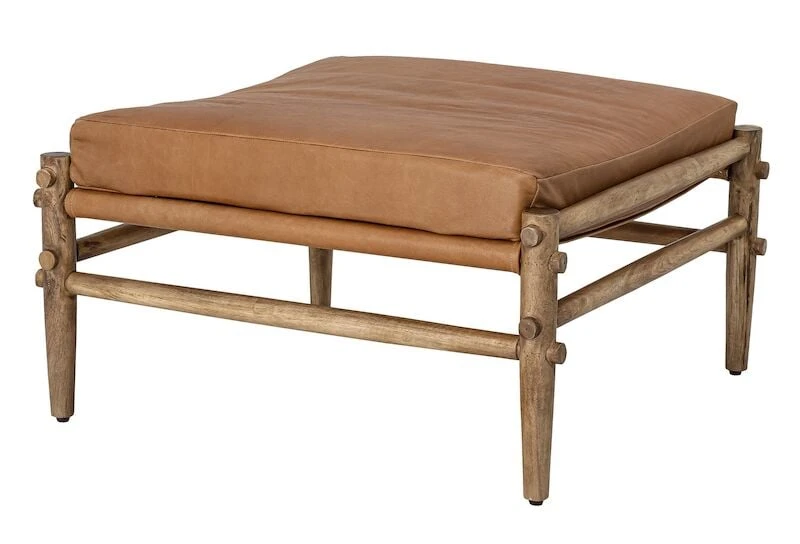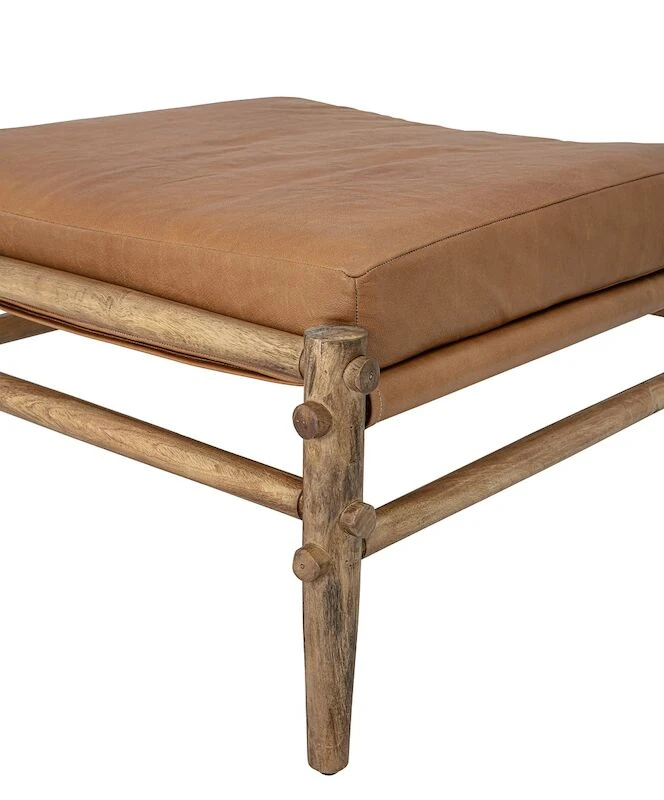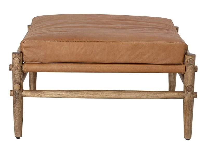 Mangopuusta valmistettu Bloomingville Aysia rahi. Pehmuste verhoiltu aidolla konjakin värisellä, puhvelinahalla. Rahi on valmistettu luonnonmateriaaleista, joten kuvioinnissa ja sävyissä voi olla eroja.