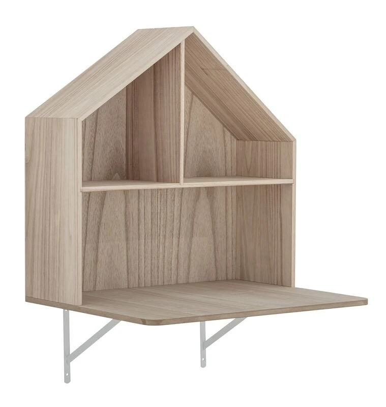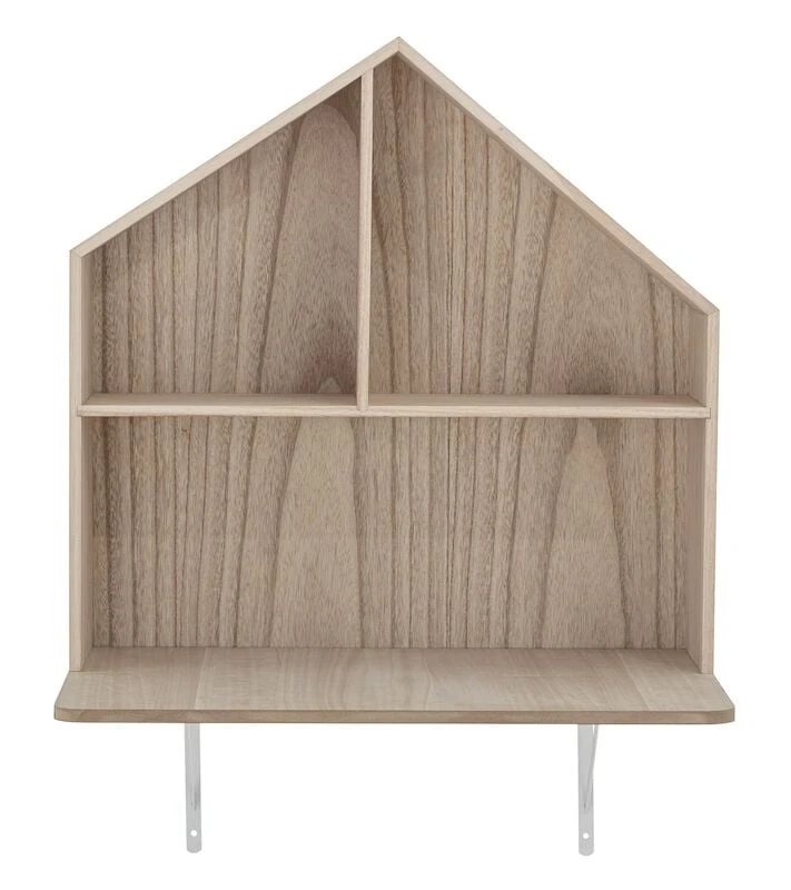 Ihastuttava talonmuotoinen seinähylly lastenhuoneeseen. Hyllyssä on säilytystilaa leluille ja kirjoille. Hyllyssä toimii myös työpöytänä sekä nukkekotina leikeissä. Kiinnitetään seinälle ruuvien avulla, jotka sisältyy hintaan. Materiaalina keisaripuu, paulownia.