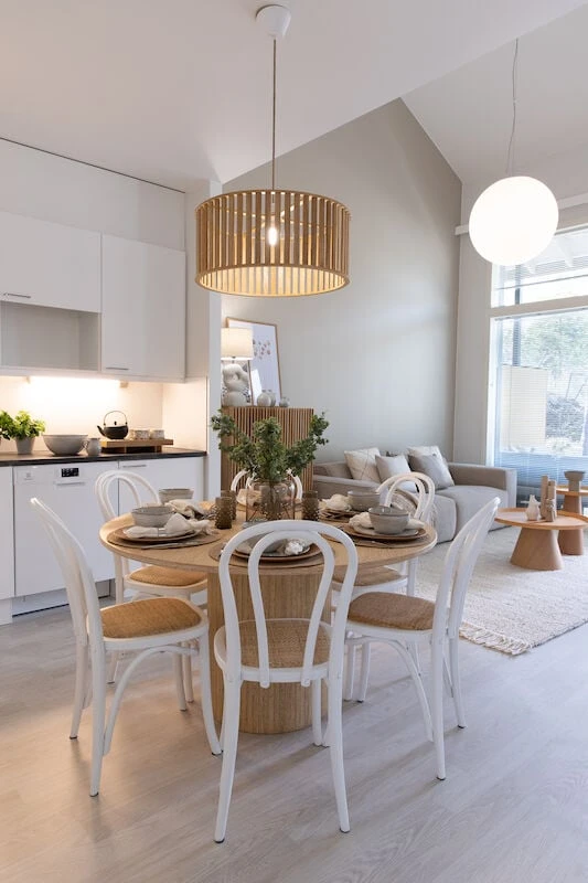 Pöytälevyn materiaali: tammiviilu. Jalan materiaali: tammi. Pintakäsittely: Matta lakka.
