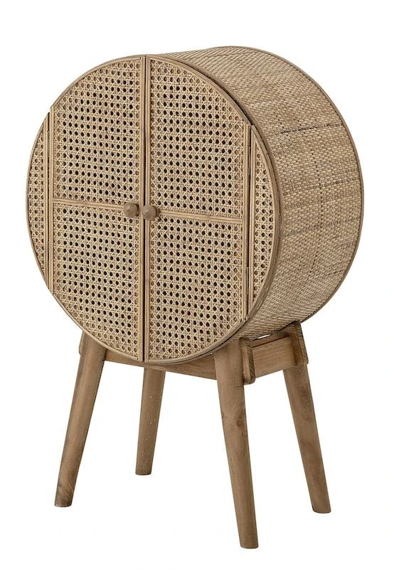 Ihastuttavan pieni Bloomingville Otto kaappi. Kaapin runko on valmistettu kuusipuusta ja mdf-levystä. Jalat on valmistettu kuusipuusta. Kaapin ovet ja sivut ovat aitoa rottinkia. Kaapin sisällä olevan hyllylevyn maksimi kantavuus on 8 kg. Tuote toimitetaan valmiiksi kasattuna.