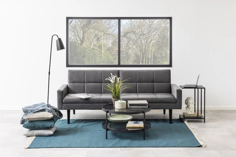 Tyylikkäässä Bayonne sohvapöydässä on lasinen kansi kahdessa tasossa. Lasi on sävyltään savunharmaa ja runko puolestaan on mustaksi pulverimaalattua metallia. Moderni sohvapöytä sopii hyvin erilaisiin sisusustyyleihin. Sohvapöydällä on runsaasti tilaa kahdessa tasossa niin aikakausilehdille, kuin maljakoillekin.