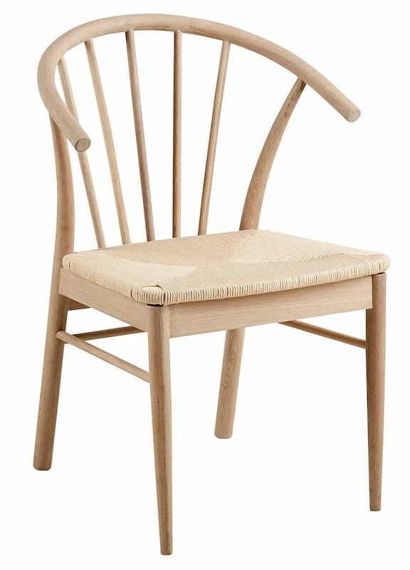 Kaunis, skandinaavinen Cassandra tuoli on valmistettu tammesta. Tyylikäs kaareva selkänoja ei vain tue selkää, vaan se antaa tuolille persoonallisen ilmeen. Istuinosa on luonnonvalkoista paperipunosta. Tyylikäs tuoli sopii kaikkion kodin huoneisiin, mutta ennenkaikkea ruokailutilaan.