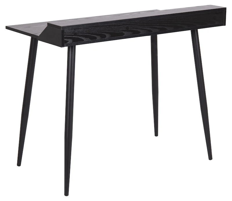 Tyylikäs ja sirokokoinen Joe työpöytä sopii kotitoimistoon, koululaisen huoneeseen tai vaikkapa olohuoneeseen työskentelypisteeksi. Pöytä on melamiinipintaista kalustelevyä, jossa näkyy kauniisti puunsyyt ja -kuviointi. Sirot mustat jalat ovat pulverimaalattua metallia. Yhdistä mieleisesi työtuoli ja kodin käytännöllinen työpiste on valmis. Jaloissa huopatyynyt, jotka estävät lattian naarmuuntumisen.