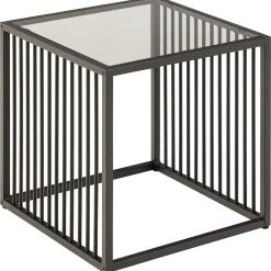 Sirokokoinen, moderni Strington sivupöytä on oiva lisälaskutaso kahvikupposelle, lehdille tai koriste-esineille. Mustassa metallikehyksessä on pystysuorat metallisäleet kahdella sivulla. Lasinen savunharmaa pöytätaso on karkaistua lasia. Sivupöydän kaveriksi löytyy saman sarjan korkeampi sekä , joilla voit täydentää olohuoneesi sisustuksen moderniksi kokonaisuudeksi.