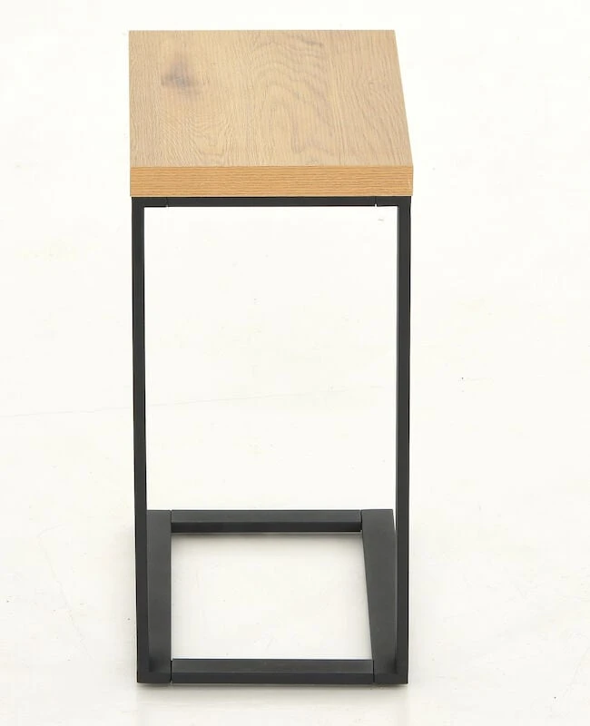 Bergen apupöydässä on tyylikkään mallinen jalka mustaksi maalatusta metallista. Muutoin 35mm paksua MDFää ja paperiviilua. Pöytä on helppo työntää esim. sohvan alle jolloin saat tason vaikka herkutteluhetkiä varten sohvalle. Enää ei tarvitse miettiä mihin laittaa dippikipon tai pitsalautasen! Apupöytä käy hyvin myös yöpöytänä tai eteisessä laskutilana. Kevyt siirrellä.