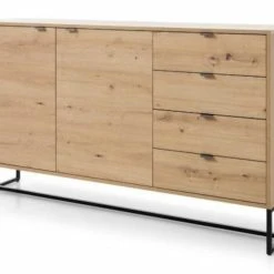 Kaunis Fore senkki 153x39x89 cm tuo sisustukseen lämpöä ja tyylikkyyttä. Kaunis tammenvärinen runko, mustat vetimet ja metallijalka. Runko laminoitua kalustelevyä. Senkissä kaksi kaappi, joiden molempien sisällä yksi kiinteä hylly, sekä neljä vetolaatikkoa.