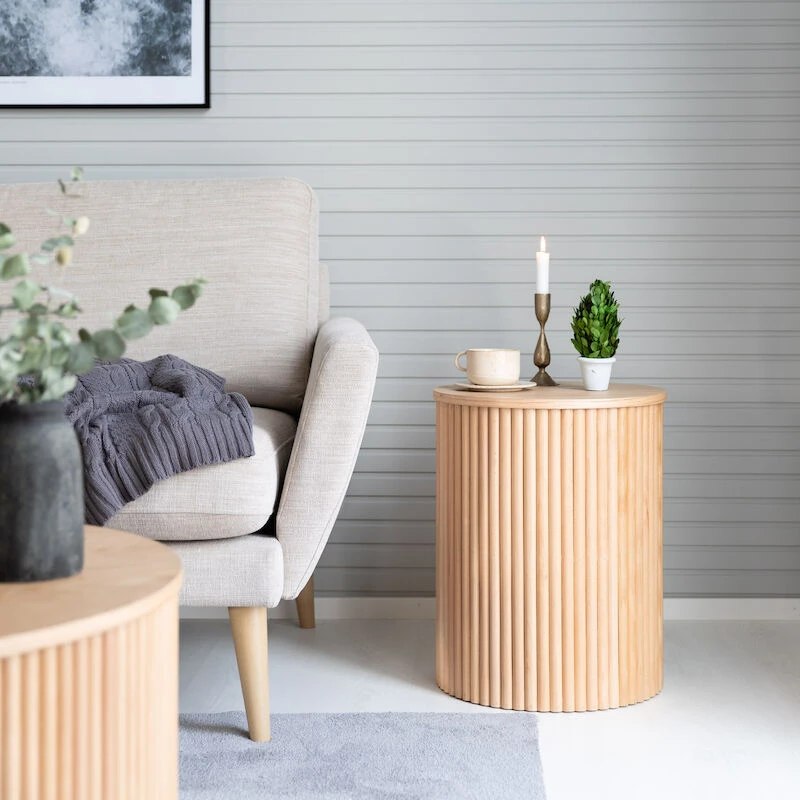 Verso apupöydässä on sormipaneelin tyylinen kehys ympärillä, joka on aivan ihana! Tuotteen runko on 12 mm paksua MDF-levyä ja puuviilua. Pyöreä apupöytä on aina hyvä valinta, silläse ei massiivisuudellaan hallitse tilaa, mutta hyöty siitä on valtava.