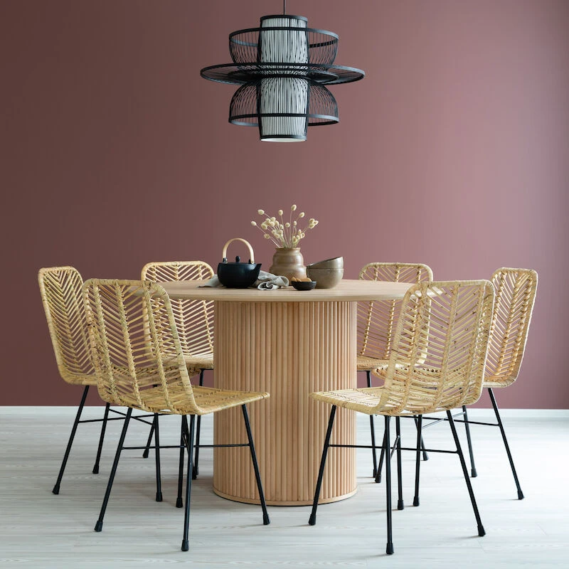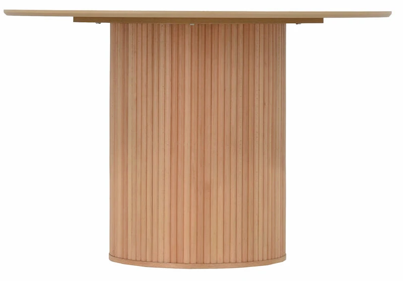 Verso on tyylikäs pyöreä ruokapöytä, jonka jalka on koristeltu pyökkirimoilla. Pöydän kannen halkaisija on 120 cm, joten pöydän ympärille mahtuu tilavasti 4 henkilöä, tarvittaessa enemmänkin. Pöydän runko ja kansi ovat mdf-levyä ja tammiviilua. Pöydän kauniiseen tammipintaan sopii hyvin erilaiset ruokapöydän tuolit, joilla kokonaisuutta saa muokattua juuri omaan tyyliin sopivaksi.