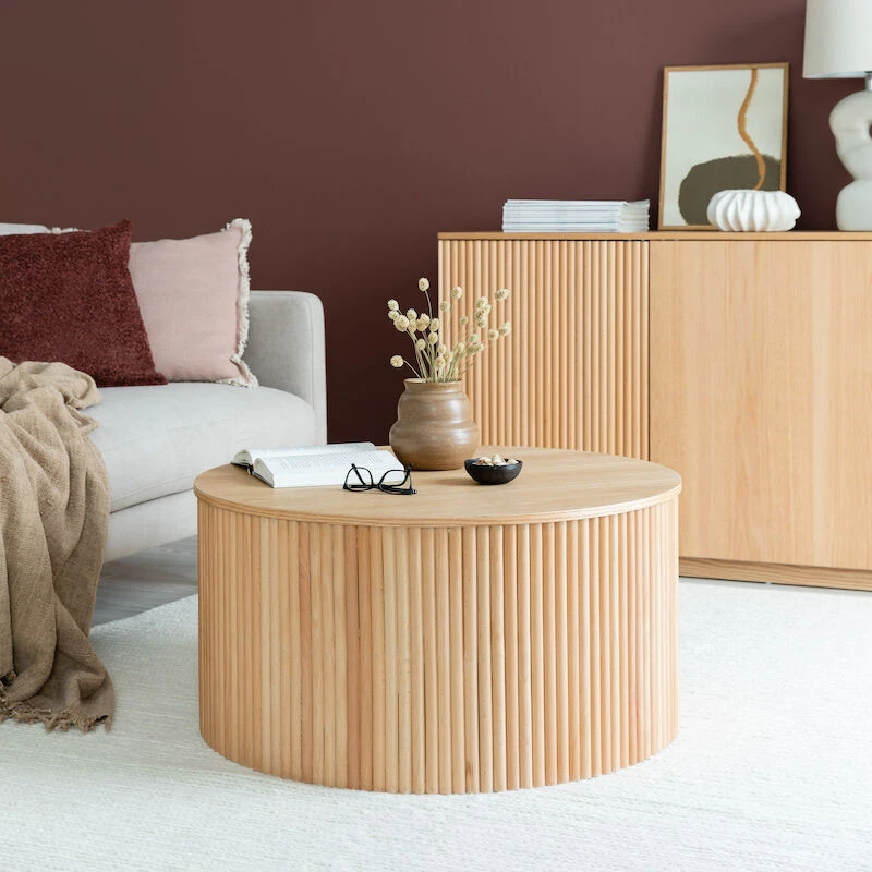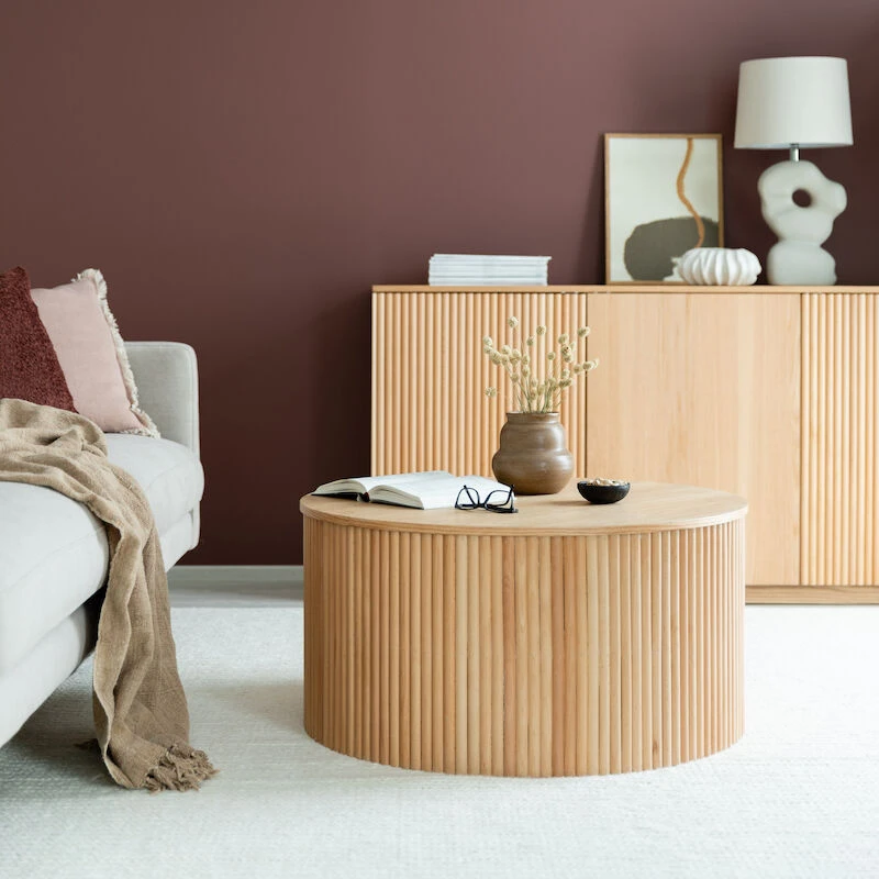 Verso sohvapöydässä on yhdistetty nykypäivä perinteisen tyylisiin materiaaleihin ja muotoiluun. Pyöreä sohvapöytä on aina hyvä valinta, sillä tuote ei ole kulmikkaaseen verraten yhtä massiivinen tai tilaa hallitseva. Sohvapöydässä on sormipaneelin tyylinen kehys ympärillä, joka on aivan ihana! Tuotteen runko on 12mm paksua MDFää ja puuviilua. Tutustu myös muihin tuotteisiin löytääksesi suosikkisi.