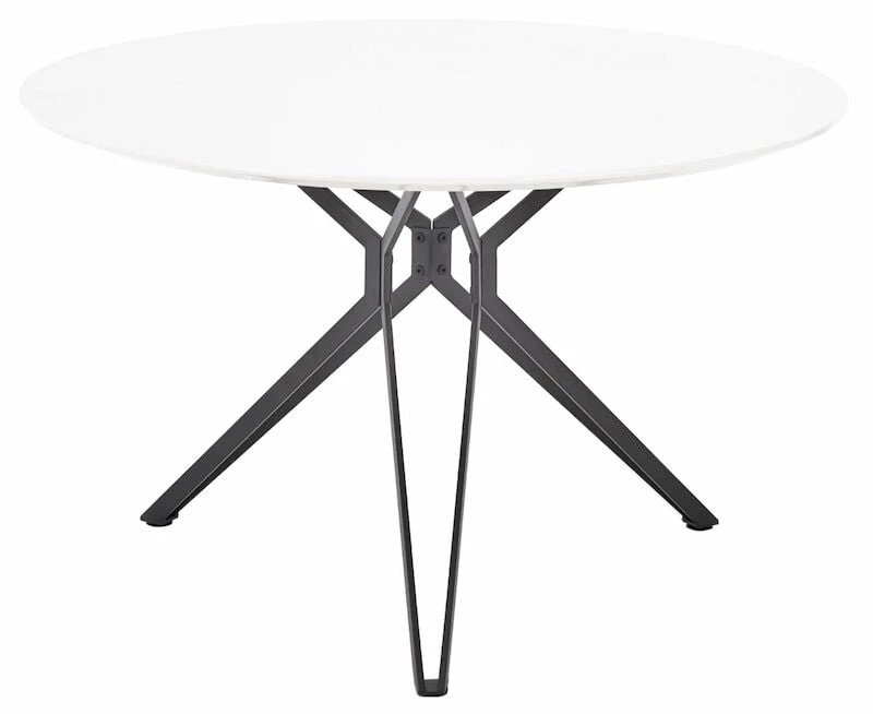 Pixel ruokapöydässä on tukeva moderni mustaksi maalattu metallijalka. Pöydän kansi on valkoiseksi maalattua MDF-levyä.