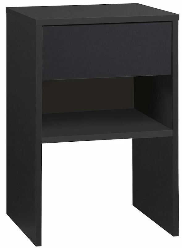 Black yöpöytä on kotimainen tuote. Black yöpöytä sopii monenlaiseen sisustukseen. Yöpöytä on valmistettu laadukkasta MFC-levystä ja tuotteen viimeistely on A-luokkaa. Yöpöydässä on avohylly ja avattava laatikko liukukiskoilla. Avohyllyn mitat: Leveys 36,5 cm, syvyys 37,5 cm ja korkeus 15,5 cm.