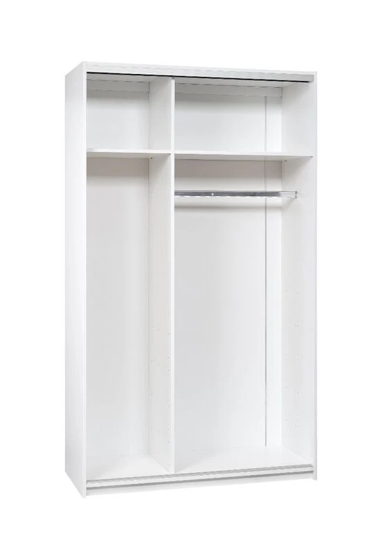 Ida vaatekaappi peiliovilla, joissa on hyvin toimiva liukumekanismi. Käytännöllinen vaatekaappi, johon saatavilla useita erilaisia lisävarustepaketteja. Ida liukuovikaapit valmistetaan Suomessa. Vakiona tämän komeron ovien takaa löytyy kiinteät ylähyllyt ja valohenkaritanko pattereilla. Valo syttyy, kun oven avaa ja sammuu myös automaattisesti. Ida liukuovikomeroon voit valita 120 tai 180 leveyden ja komeron sisälle haluamasi lisävarusteet. Katso yhteen kuuluvat tuotteet osta lisäksi-tuotteista.