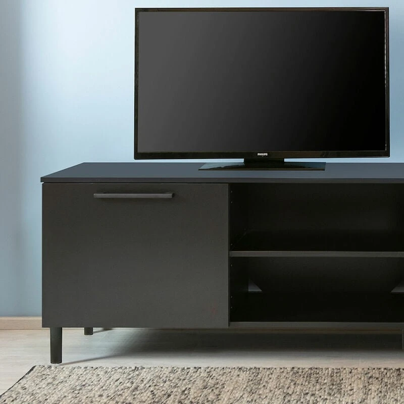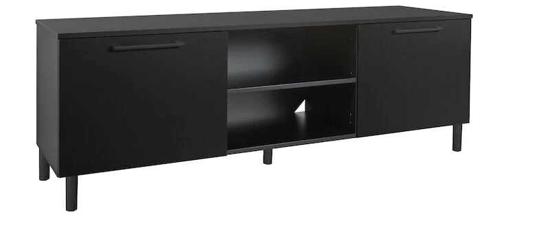 Suomessa valmistettu Solo tv-taso on tyylikäs ja yksinkertaisen kaunis. Materiaalina melamiinipinnoitettu, 16 mm kalustelevy. Tv-tason molemmissa reunoissa on kaapit, joissa yhdet välihyllyt ja keskellä kaksi avo-osaa. Säädettävät irtohyllyt. Molempien umpinaisten kaappien takana oleva levy on muutaman sentin auki, josta voi johtoja tuoda läpi.