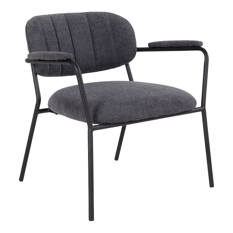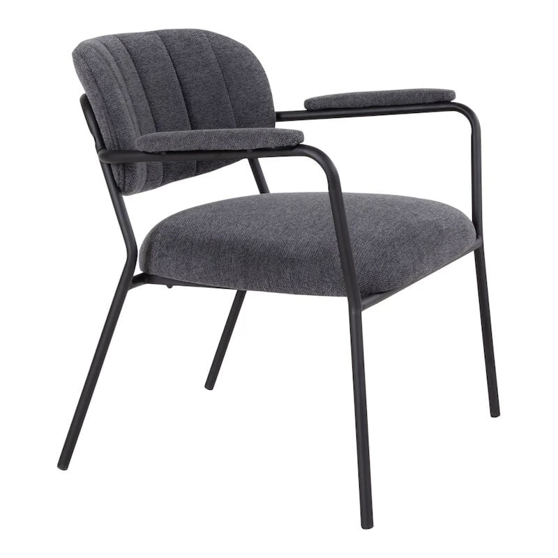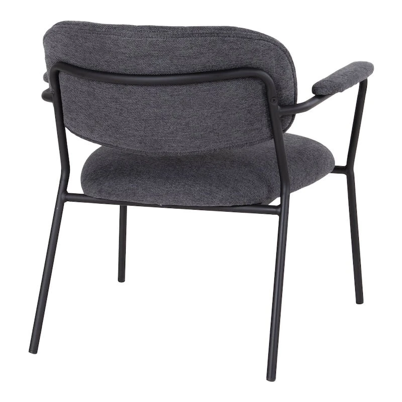 House Nordic Alicante nojatuoli on verhoiltu tummanharmaalla huonekalukankaalla. Pehmusteena on vaahtomuovi. Tuolin runko on mustaksi maalattua metallia. Tuote toimitetaan valmiiksi kasattuna.