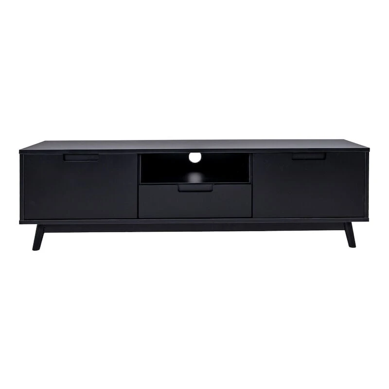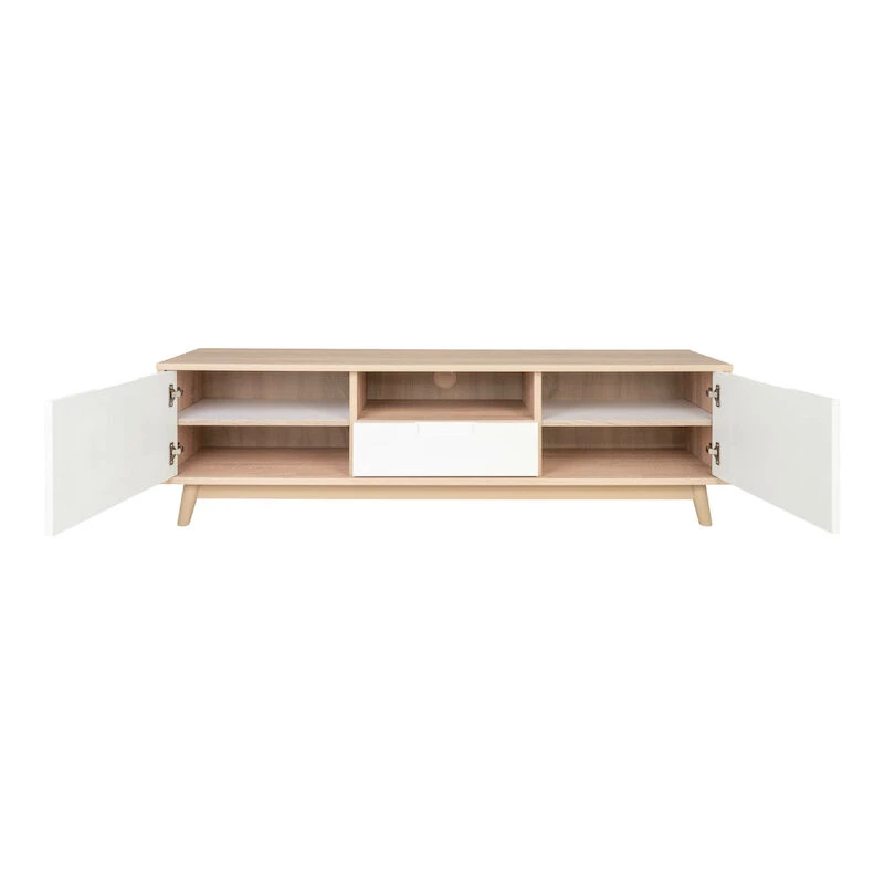Tyylikäs ja tukeva House Nordic Copenhagen tv-taso kahdella kaapilla, yhdellä laatikolla ja yhdellä avohyllyllä. Materiaalina on MDF, pinnoitettu mänty ja melamiini. Avohyllyssä on läpivienti johtoja varten.