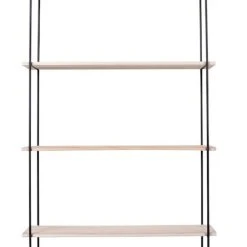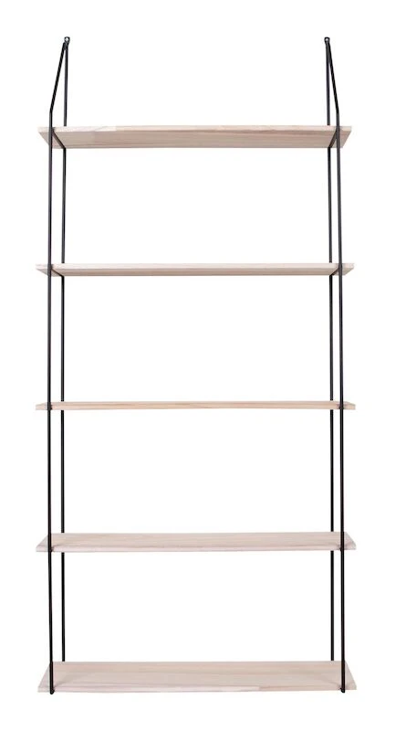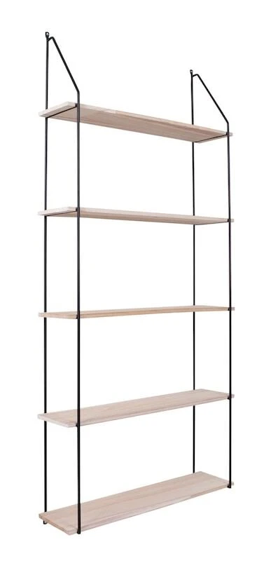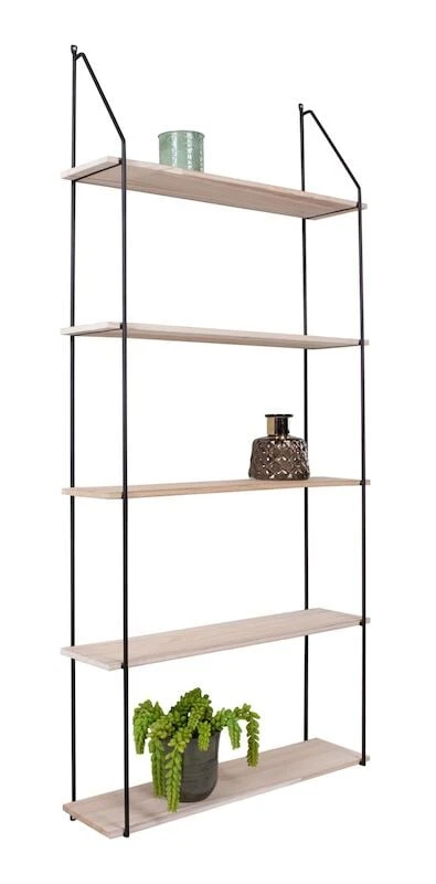 Moderni ja selkeälinjainen Eindhoven seinähylly viidellä hyllylevyllä. Hyllylevyt ovat puuta ja runko maalattua terästä. Ruuvit seinähyllyn kiinnittämistä varten ei tule mukana.