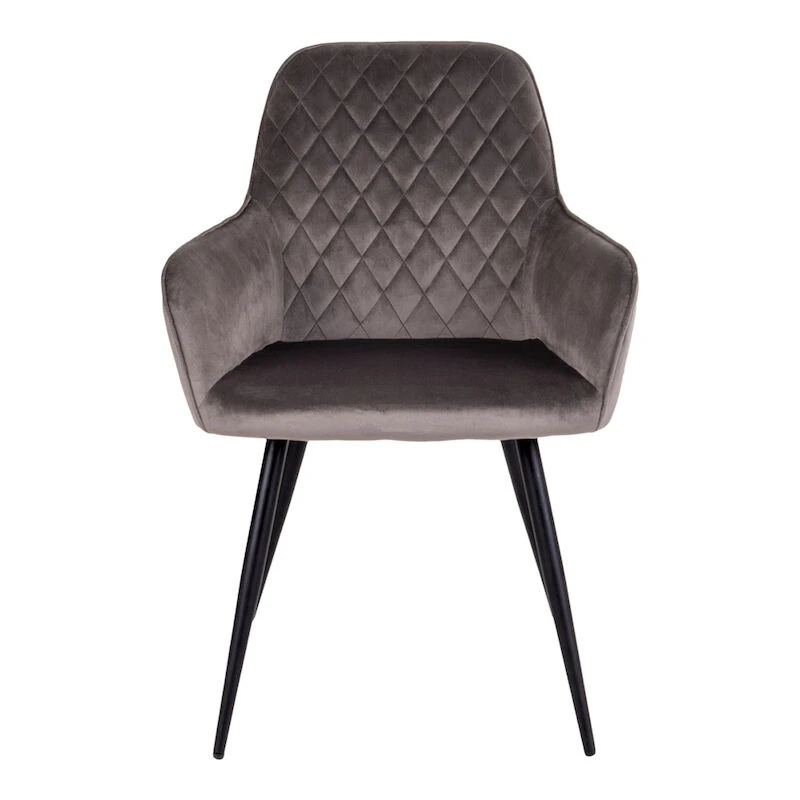 Tyylikäs ja elegantti House Nordic Harbo tuoli samettiverhoilulla. Nojatuolin istuinosa on samettiverhoiltu, jalat mustaksi maalattua metallia. Istuinosan värivaihtoehtoina ruskea, vihreä ja punainen. Selkänojassa olevat kauniit tikkaukset luovat tuoliin viehättävän yksityiskohdan. Tuoli sopii ruokapöydän tuoliksi tai mainiosti myös kodin muihin tiloihin.