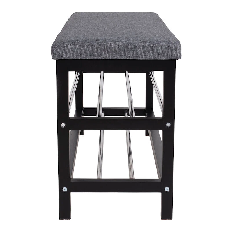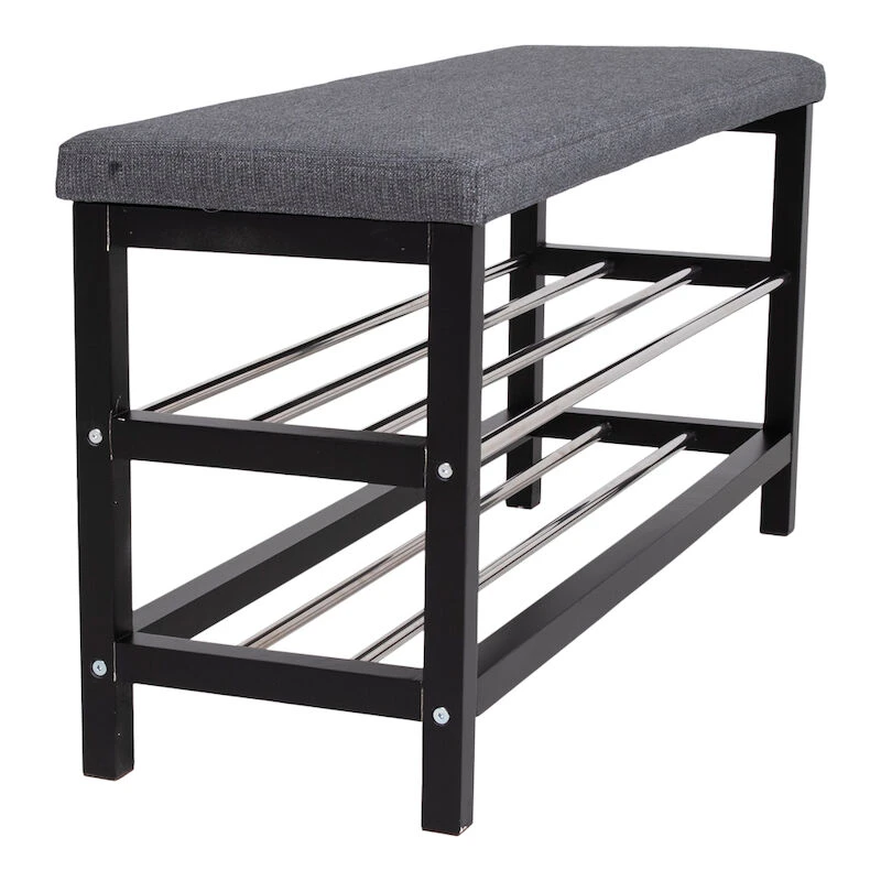 Erittäin tyylikäs ja käytännöllinen kenkäteline/penkki jolle on mukava istahtaa laittamaan kenkiä jalkaan. Materiaalit: Kovapuu, metalli, polyesteri.