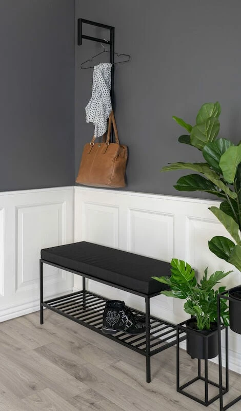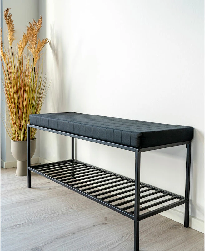 Tyylikäs ja käytännöllinen penkki eteiseen tai kodin muihin tiloihin. Penkissä on kangaspäällysteinen istuinpehmuste ja alahyllyllä säilytystilaa esimerkiksi kengille, laukuille tai vaikkapa lehdille.