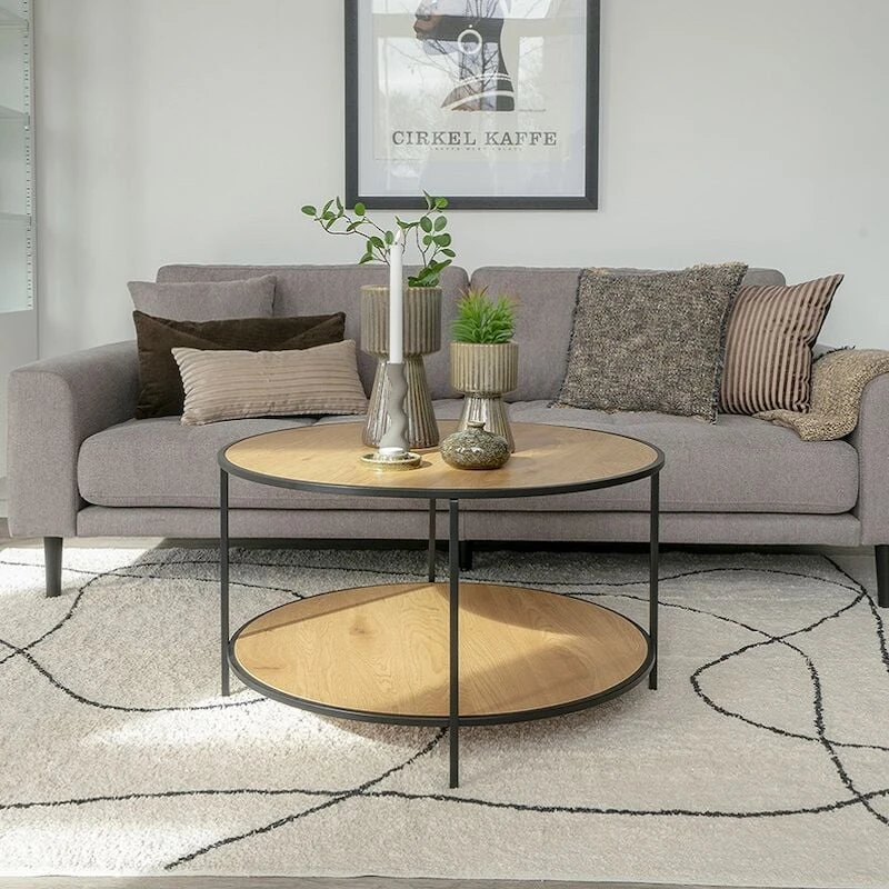 Pyöreä, siro ja kaunis House Nordic Vita sarjaan kuuluva sohvapöytä. Sohvapöydässä on tyylikäs musta runko. Helppo kasata ja tarvittaessa myös siirtää huoneesta toiseen. Kahdessa tasossa säilytystilaa esim. lehdille ja kynttilänjaloille.