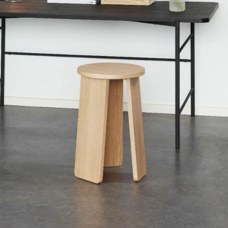 Pyöreä tammiviilusta valmistettu Split Triple design-jakkara jonka leveät jalat mukailevat jakkaran reunoja ja muodostavat tukevan ja näyttävän kokonaisuuden. Tuote toimii mainiosti myös apupöytänä.