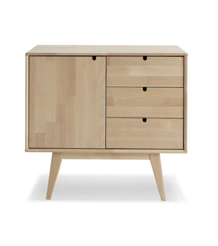 Kestävä ja tyylikäs Notte lipasto. Materiaalina massiivikoivu, väreinä koivu ja valkoiseksi maalattu, jossa koivun väriset jalat. Lipaston alle jäävä vapaa tila on 20 cm korkea. Laatikoissa metalliset kuulalaakeroidut liukukiskot. Tuotesarjan tuotteet ovat siroja ja siinä on kauniita yksityiskohtia. Notte tuotesarja on kotimainen, se on valmistettu Kiteen Huonekalutehtaalla. Lipasto toimitetaan valmiiksi kasattuna pahviin pakattuna.