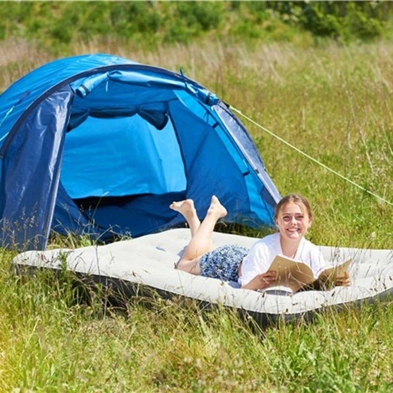 Nopeasti täytettävä kahden hengen Outfit ilmapatja 191x137x22 cm on hyvä varavuode kotiin tai mökille. Muhkean kahden hengen varavuoteen paksuus on 22 cm. Materiaali on kestävää PVC-muovia, joten se soveltuu niin sisä-kuin ulkokäyttöön. Pieneen tilaan varastoitava patja on näppärä pakata mukaan lomareissulle, retkelle tai rannalle. Ilmatäytteinen varavuodepakkaus sisältää korjaussarjan patjan paikkaamiseen. Ilmapatjan mukana ei tule pumppua.