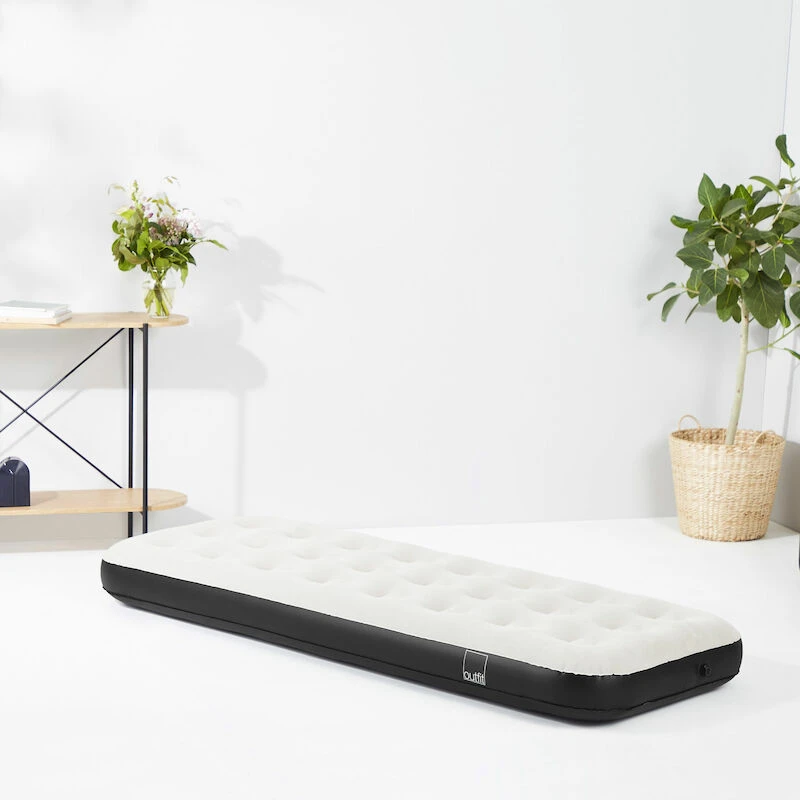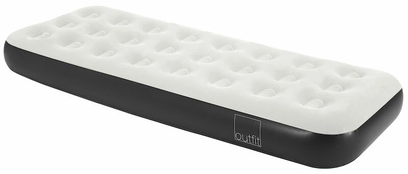 Yhden hengen Outfit ilmapatja on hyvä varavuode niin mökille kuin kotiinkin. Pieneen tilaan varastoitava patja on kätevä napata mukaan lomareissulle tai retkelle. Ilmapatja on valmistettu kestävästä PVC-muovista, joten patja soveltuu niin sisä- kuin ulkokäyttöön. Varavuoteella on mukava nukkua, sillä patjan paksuus on 22 cm. Mukana tulee korjauspaikkasarja. Patjan mukana ei tule pumppua.