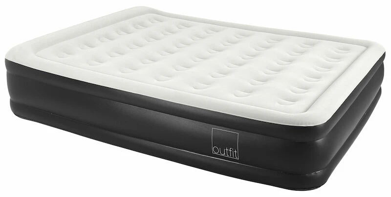 Kahden hengen Outfit Luxus ilmapatja on helppokäyttöinen ja sopii hyvin varavuoteeksi. Ilmapatja on helppo ja nopea täyttää sekä mukava nukkua. Patjan paksuus on 46 cm. Mukana korjauspaikka sekä kantolaukku.