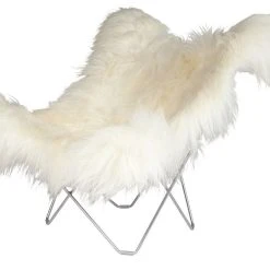 Cuero Iceland Mariposa Shorn White Lepakkotuoli, Musta Jalka