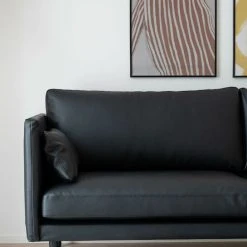 Veke Kajo 3-istuttava Sohva Musta Bonded-nahka, Mustat Jalat