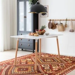 Veke Fox Ruokapöytä 140×80 Cm Valkoinen, Luonnonväriset Jalat