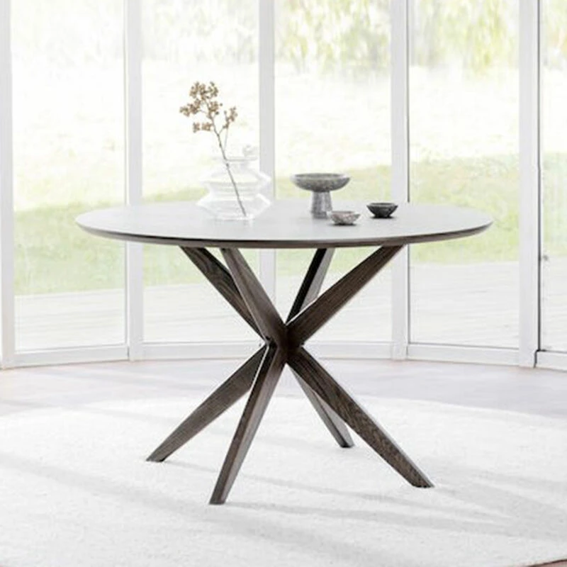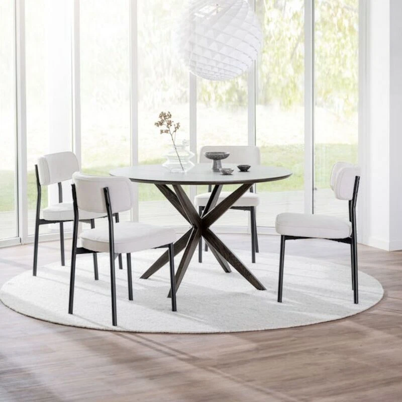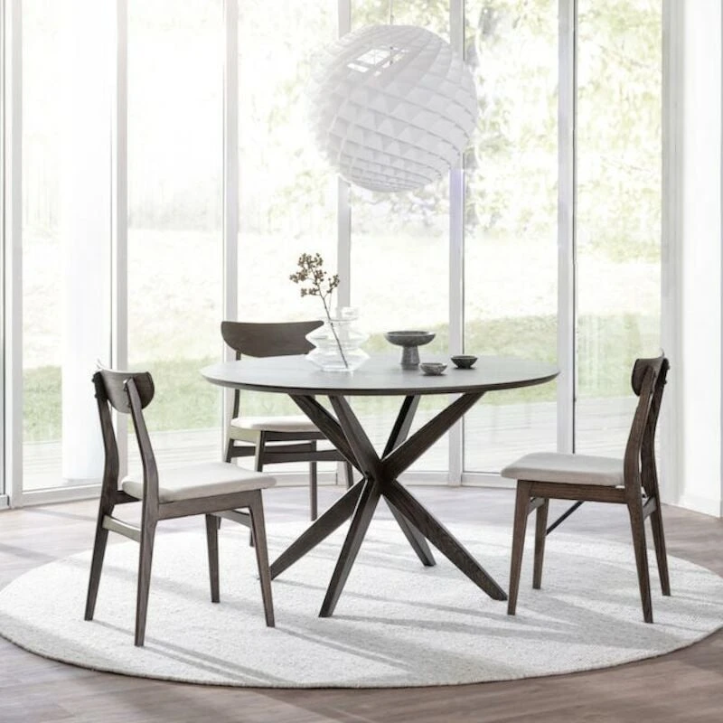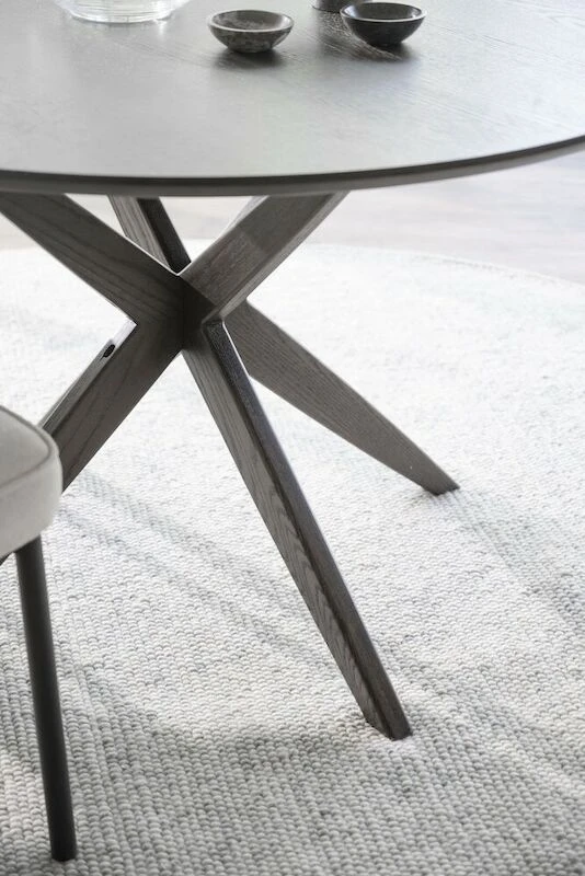 Rowico Calverton on kaunis pyöreä ruokapöytä, jonka katseenvangitsija on massiivitammesta valmistettu jalkaosa. Pöydän kansi on tammiviilutettua mdf-levyä, jossa on kaunis ruskean sävyinen, harjattu pinta. Pöytä sopii täydellisesti skandinaavisiin koteihin, jotka on sisustettu moderniin tai japandi-henkiseen tyyliin. Pöydän ympärille sopii niin kokopuiset kuin verhoillutkin tuolit.