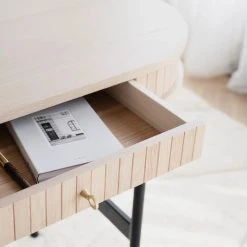 Tyylikäs ja moderni Rowico Camrose yöpöytä sopii täydellisesti yhteen samanlaisen Rigginsin sängynpäädyn kanssa tai vaikka eteiseen pieneksi sivupöydäksi. Pöydässä on taso pienille tavaroille. Helppo sijoittaa seinälle sängyn korkeuden mukaan. Päällisen materiaali on tammiviilutettu MDF-levy ja runko massiivitammea.