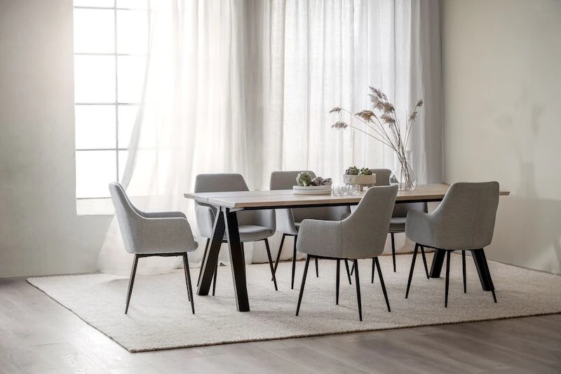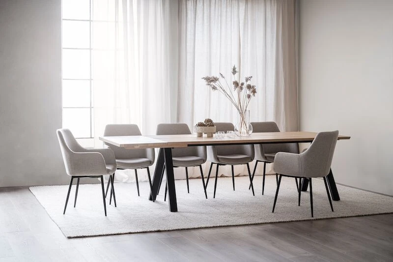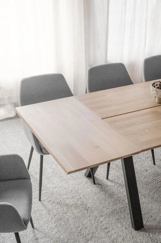 Ihastuttava Rowico Carradale jatkettava ruokapöytä 220×100 cm tarjoaa upeita luonnollisia sävyjä kodin sisustamiseen. Ruokapöydän metallinen V-jalka on tyylikäs yksityiskohta, joka luo ilmavuutta tukevaan pöytään. Pöydän kansilevy on massiivipuuta, valkopestyssä ja ruskeassa massiivitammea ja mustassa massiivisaarni. Kaksiosainen lankkupöytä tyylinen kansilevy on valmistettu kahdesta osasta, pöytälevyjen välissä kulkee kapea rako. Pöytään on saatavilla molempiin päihin erikseen ostettava jatkopala 50 cm, jolloin maksimipituus on 320 cm. Pöydän jalat säädettävissä. Tähän upeaan pöytään voit helposti yhdistää eri tyylisiä tuoleja. Tämän tyylikkään ja kauniin pöydän ympärille sopii isompikin ystäväjoukko brunssille tai illalliselle.
