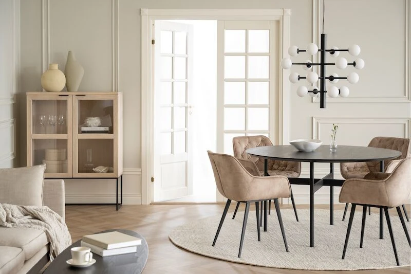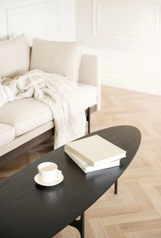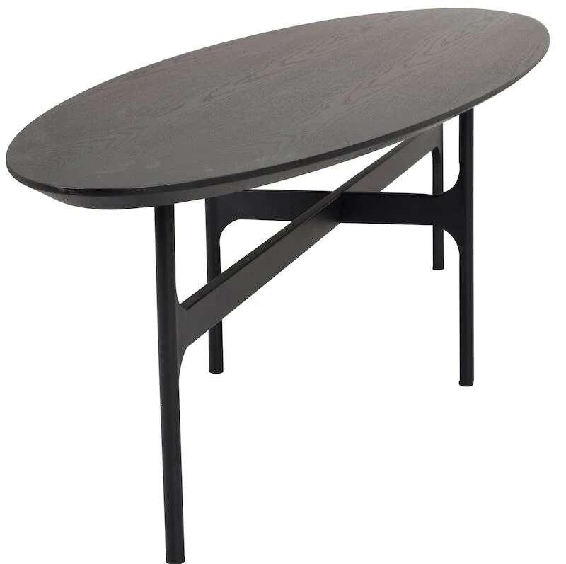 Moderni ja linjakas pohjoismaista designia huokuva Rowico Colton sohvapöytä on korkealaatuinen. Tyylikäs ovaalin muotoinen pöytälevy on mustaksi lakattua saarniviilua, jolloin puun oma kuviointi näkyy. Keveän ilmeen tuo mustat sirot ja säädettävät metallijalat. Pöydän muoto antaa pehmeän vaikutelman ja sopii hyvin yhdistettävän leveän sohvan kanssa.