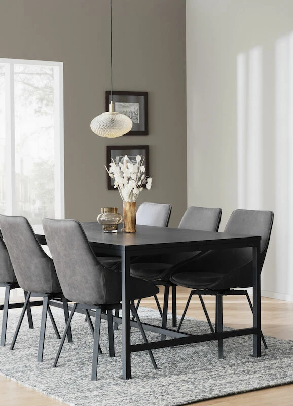 Rowico Everett ruokapöytä on tyylikkään ruokailutilan sydän. Pöydässä on selkeä ja moderni muotoilu, jonka ympärille on helppo yhdistellä erilaisia tuoleja. Pöydässä on yhtenäinen kansiosa. Musta kansi on saarnia ja valkopesty tammea. Pöydässä on harjattu pinta, josta kuultaa puunsyyt ja oksankohdat kauniisti läpi. Modernissa pöydässä on sirot, mutta tukevat pulverimaalatut metallijalat. Pöytää voidaan jatkaa molemmista päädyistä erikseen myytävällä , jolloin pöytään on mahdollista saada jatkamalla maksimissaan metrin verran lisää mittaa. Everett-sarja kuuluu Rowicon FSC-sertifioituihin huonekaluihin. Se tarkoittaa, että kaikki huonekalun rakentamisessa käytetyt puukomponentit on toimitettu vastuullisesti ja ympäristöystävällisesti hoidetusta metsästä.