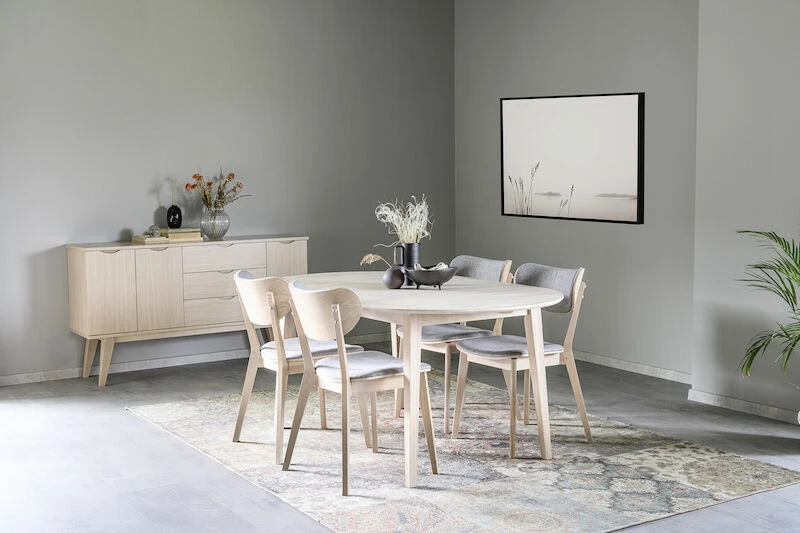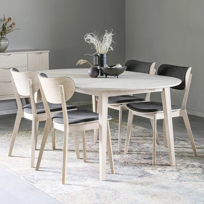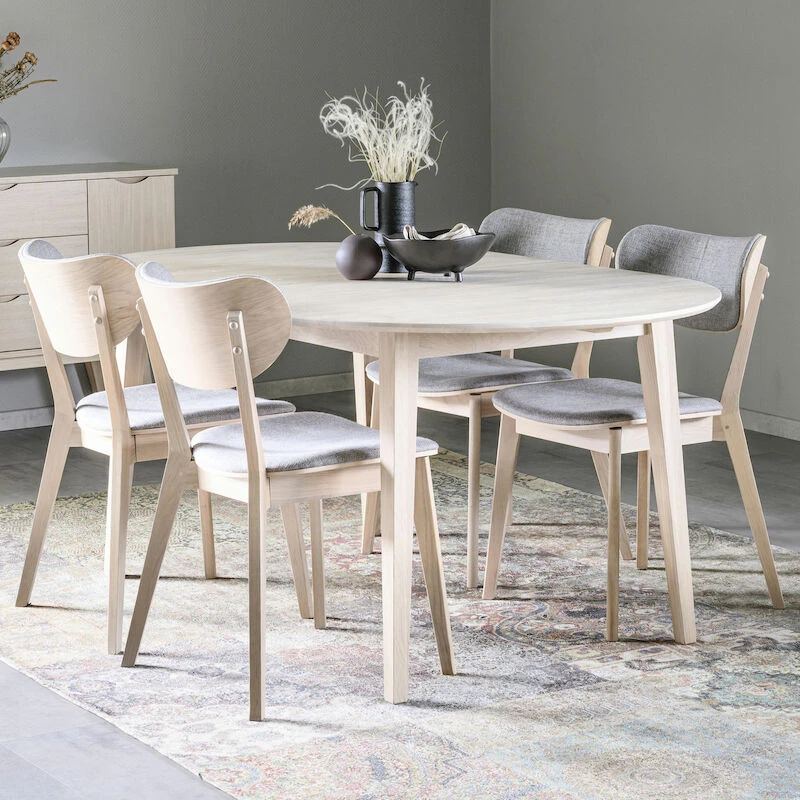 Rowico Filippa-Kato 4-hengen ruokailuryhmään kuuluu ovaalin muotoinen jatkettava ruokapöytä. Pöydän mukana tulee jatkopala, jolla pöydän mitan saa kasvatettua 170 cm mitasta 210 cm pitkäksi. Sekä pöydän että tuolin materiaalina on kaunis, laadukas ja luja tammi. Kato tuoli on muotoilultaan ajaton ja tyylikäs, joka sopii niin juhlaan kuin arkeen. Tuolin istuinosa on verhoiltu kestävällä huonekalukankaalla. Öljytty pöytä on valmistettu Kroatiassa ja lakatut tuolit Kiinassa.
