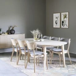 Rowico Filippa-Kato 6-hengen ruokailuryhmään kuuluu ovaalin muotoinen jatkettava ruokapöytä. Pöydän mukana tulee jatkopala, jolla pöydän mitan saa kasvatettua 170 cm mitasta 210 cm pitkäksi. Sekä pöydän että tuolin materiaalina on kaunis, laadukas ja luja tammi. Kato tuoli on muotoilultaan ajaton ja tyylikäs, joka sopii niin juhlaan kuin arkeen. Tuolin istuinosa on verhoiltu kestävällä huonekalukankaalla. Öljytty pöytä on valmistettu Kroatiassa ja lakatut tuolit Kiinassa.