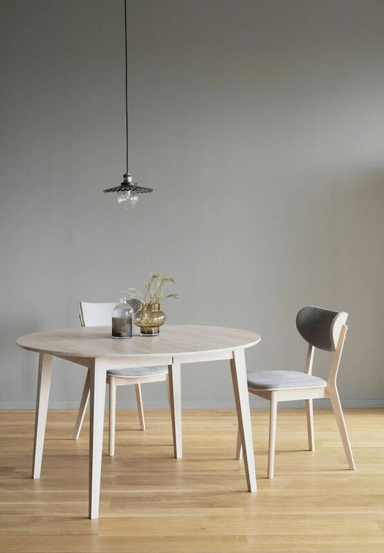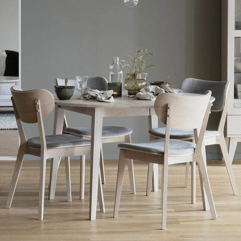 Rowico Filippa-Kato 4-hengen pyöreään ruokailuryhmään kuuluu jatkettava Rowico Filippa pyöreä ruokapöytä, jonka halkaisija on Ø120 cm. Pöytä on jatkettavissa mukana tulevalla jatkopalalla, jolloin pöydän kokonaispituus on 210 cm. Jatkopala on oivallinen juhlia ajatellen tai kun pöydän ympärille kokoontuu suurempi määrä ihmisiä. Pöydän muotoilu on ajaton ja selkeä, se soveltuu hyvin eri tyylisiin keittiöihin ja ruokailutiloihin. Pöydän ympärille sopii täydellisesti nämä tyylikkäät ja ajattomat Rowico Kato tuolit, joissa on kiinteä kulutusta kestävä polyesterkangasverhoilu. Öljytty pöytä on valmistettu Kroatiassa ja lakatut tuolit Kiinassa.
