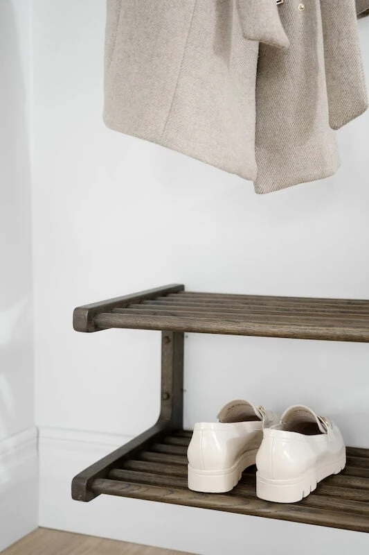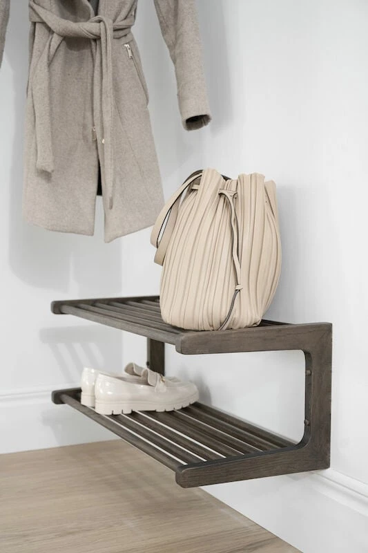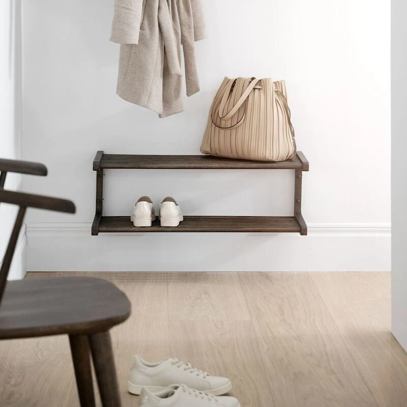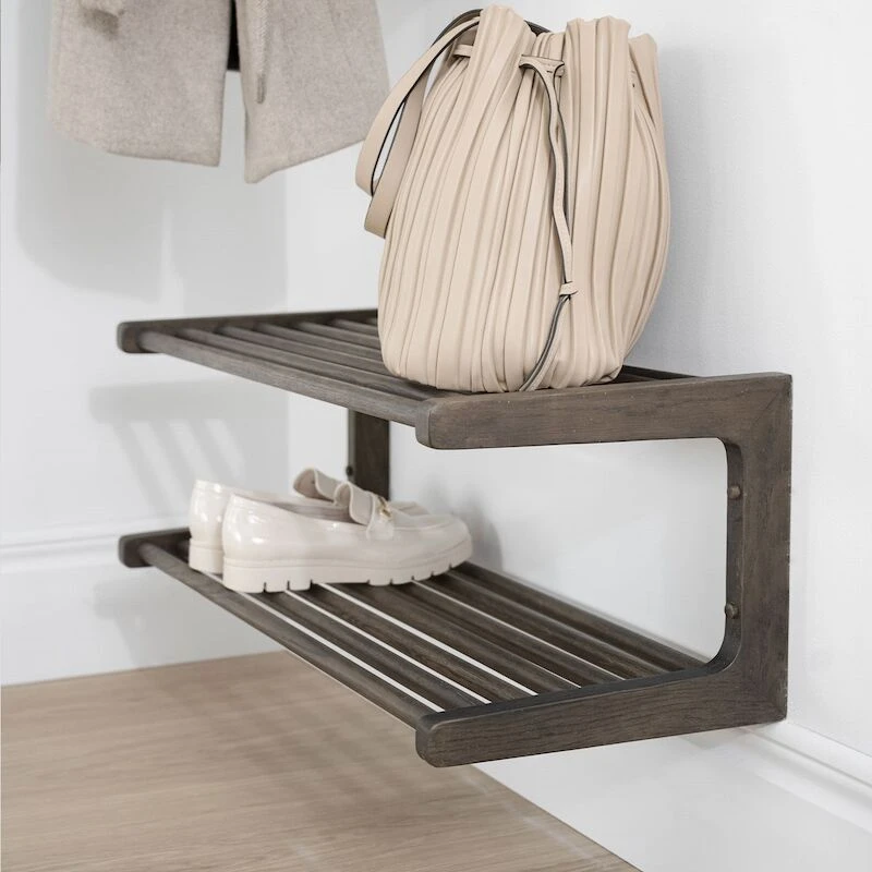 Käytännöllinen ja sisustuksellinen Rowico Inverness kenkäteline pitää kengät siististi järjestyksessä. Kenkäteline koostuu kahdesta hyllystä ja se asennetaan suoraan seinälle haluamallesi korkeudelle. Seinälle kiinnitetty kenkäteline ei vie lattiatilaa ja näin siivoaminen on helpompaa. Teline kiinnitetään seinälle ruuvien avulla.