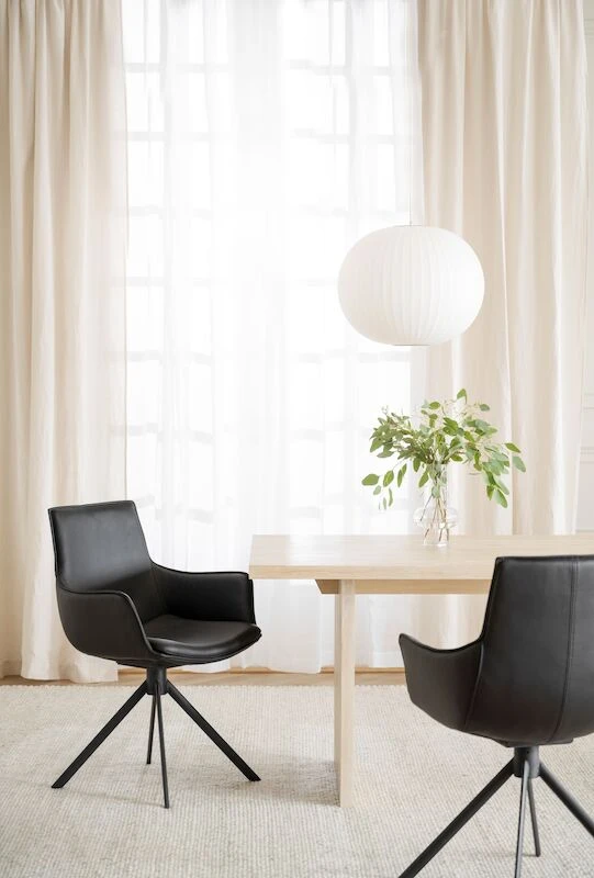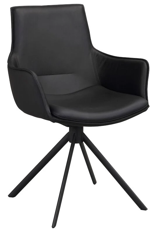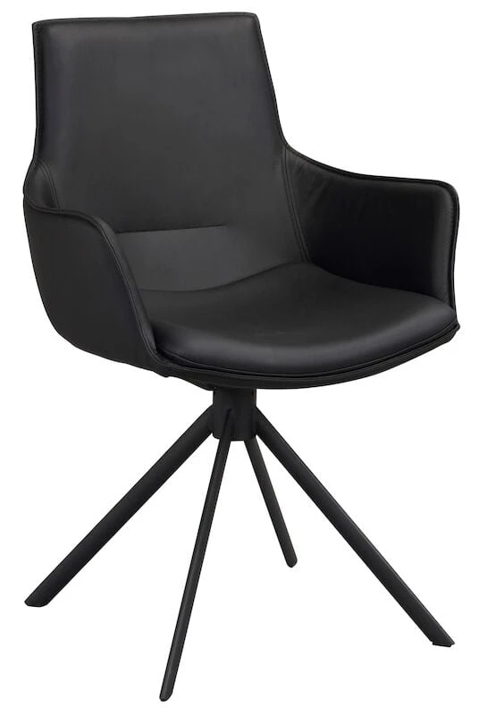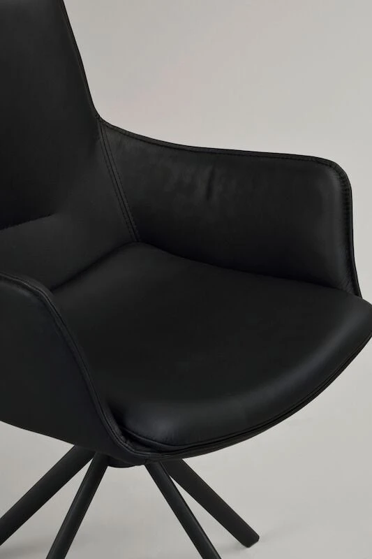 Trendikäs ja tyylikäs Rowicon Lowell pyörivä tuoli käsinojilla on korkealaatuinen ja todella hyvällä istuttavuudella. Käsinojatuolin istuinosa on pehmustettu ja verhoiltu aidolla nahalla joka on todella pitkäikäistä ja helposti puhdistettavaa. Tuolissa on tukeva mustaksi pulverimaalattu metallijalka ja se sisältää pyörintämekanismin. Todella käytännöllinen ja laadukas ruokapöydän tuoli, joka on helposti yhdistettävissä erilaisiin pöytiin.