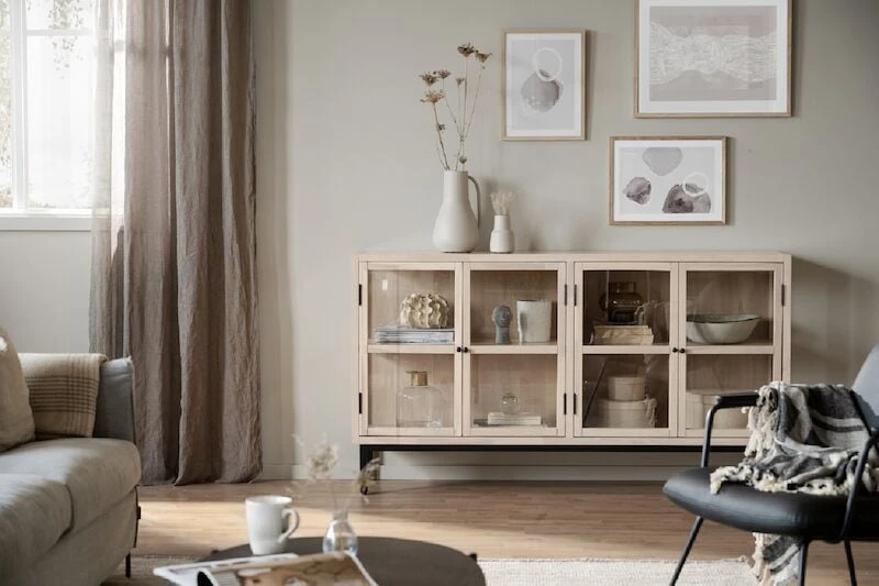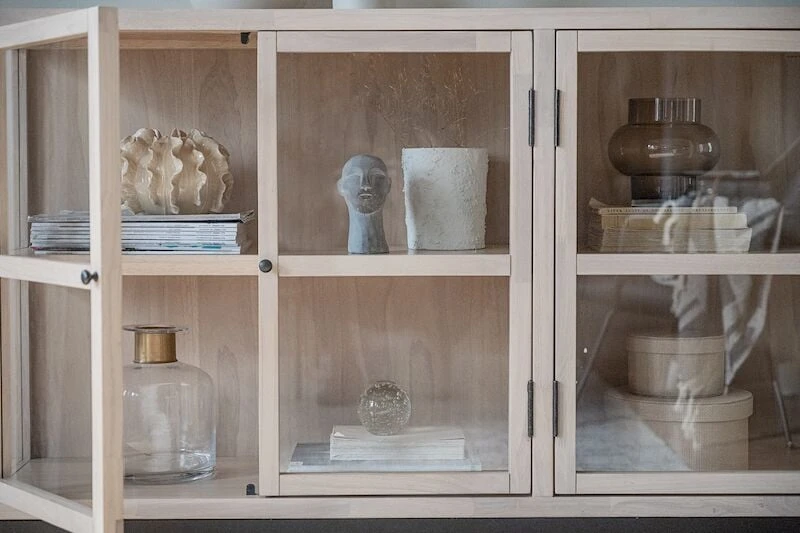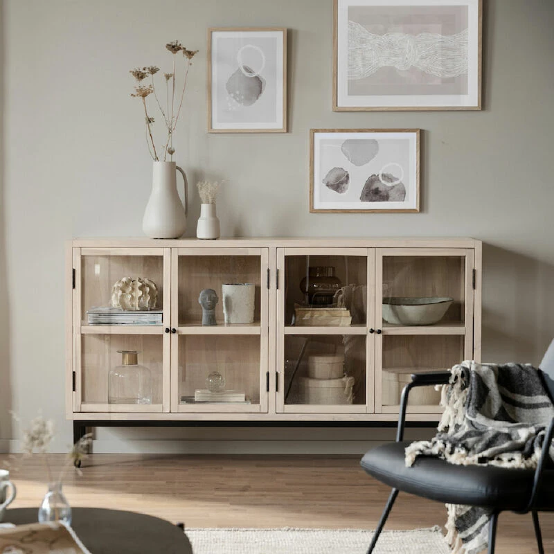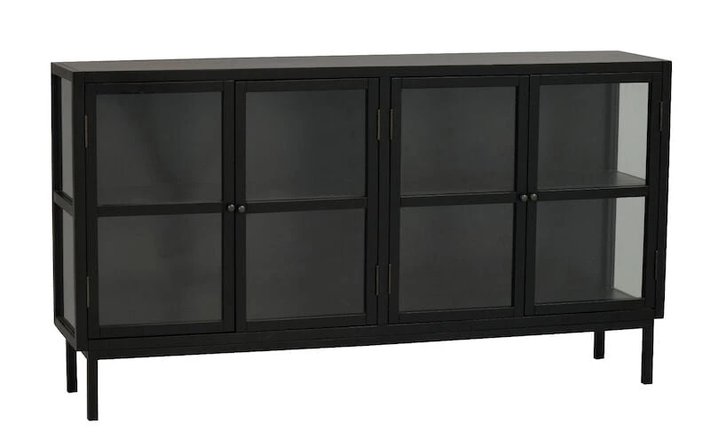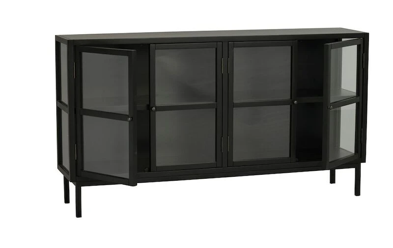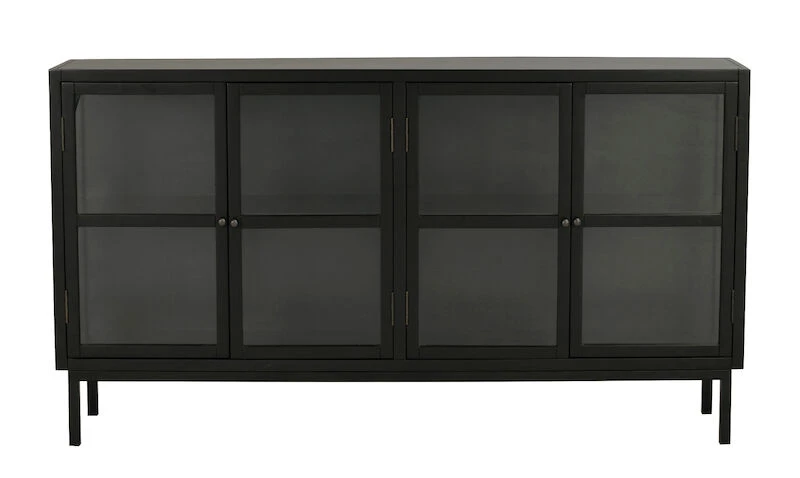 Tyylikäs Rowico Marshalle senkki neljällä lasiovella. Senkin sivut ovat myös lasia. Senkissä säilytät niin lasit kuin muutkin astiat tai koriste-esineet. Korkeat jalat tuovat senkkiin ilmavuutta ja modernia linjakkuutta. Kaapin yläosa toimitetaan valmiiksi kasattuna, jalkaosa on kasattava ja irrallaan.