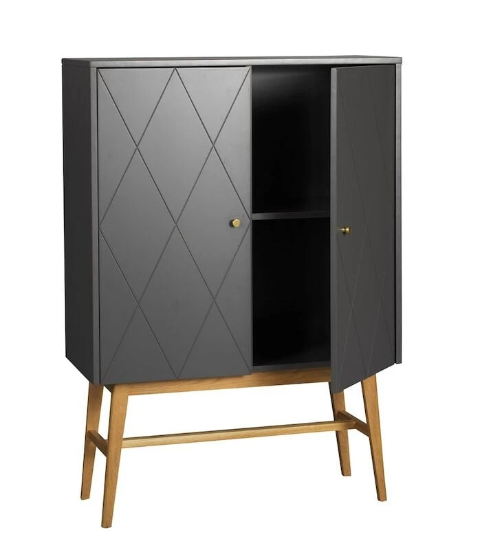Tyylikäs Rowico Rosswood kaappi piristää sisustustasi boheemilla ilmeellään. Valkoinen tai harmaa kaappi tammisilla jaloillaan ihastuttaa. Kaapin ovissa oleva samiakkikuvio on kaunis yksityiskohta. Kaappi kätkee sisäänsä niin kirjat kuin muut pientarvikkeet. Kaapin voi sijoittaa esimerkiksi olo- tai työhuoneeseen piristämään sisustustasi. Kaappi on pintakäsittelyltään lakattu.