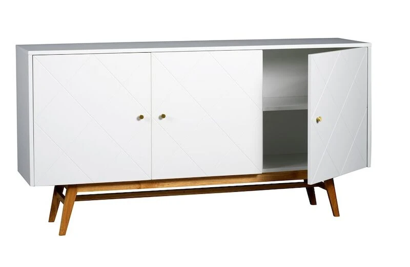 Tyylikäs Rowico Rosswood senkki 169 cm ihastuttaa valkoisella tai harmaalla kaapilla ja tammisilla jaloillaan. Senkki on kaunis lisä sisustukseesi sen salmiakkikuvioinnin ansiosta. Senkin voi sijoittaa niin olo- kuin työhuoneeseen ja se kätkee sisälleen paljon kirjoja kuin pieniä tavaroita. Valitse itsellesi mieluisin sävy ja ihastu! Kaappi on pintakäsittelyltään lakattu. Hyllyn maksimipaino 10 kg.