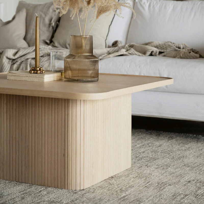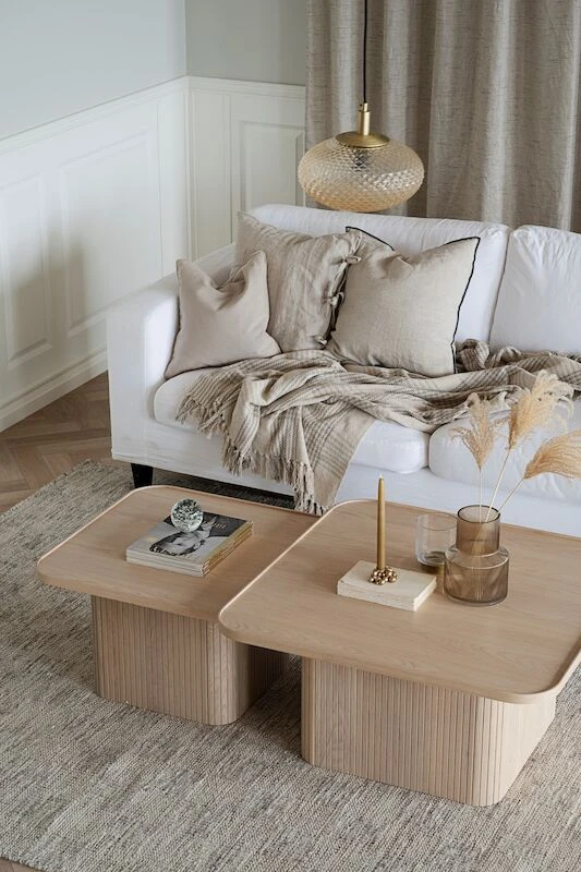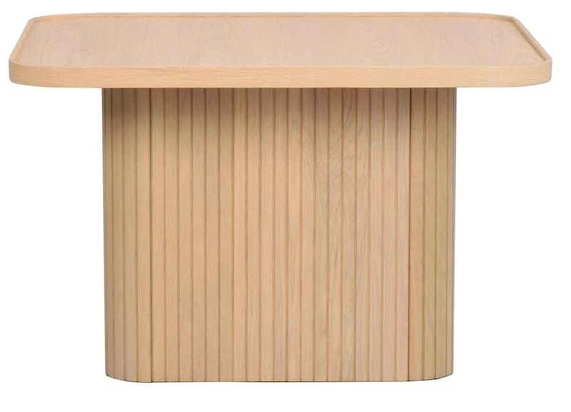 Tyylikäs funkkishenkinen ja moderni Rowico Sullivan sohvapöytä. Neliönmuotoisen pöydän jalassa on trendikkäät linjat ja kannen pyöristetyt kulmat tuovat pehmeyttä. Sohvapöytä on valmistettu tammiviilusta ja massiivitammesta. Kansi on tammiviilua ja kannen reuna sekä jalka ovat massiivitammea.