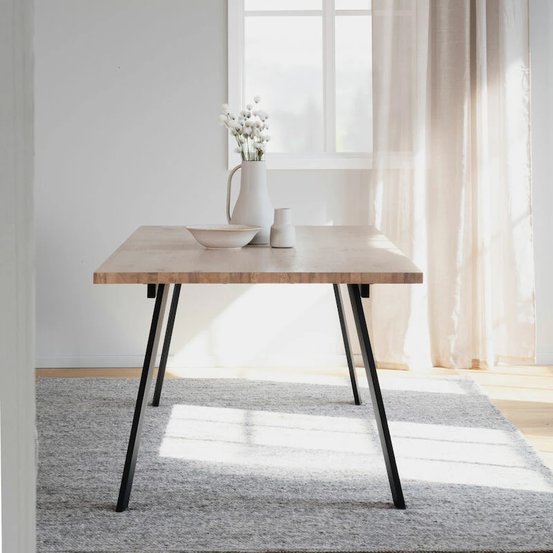 Tyylikäs ja selkeälinjainen Rowico Winnipeg ruokapöytä. Pöydän molempiin päihin on saatavilla lisävarusteena . Pöytään lisättynä molemmat jatkopalat, kokonaispituus on hulppeat 300 cm.